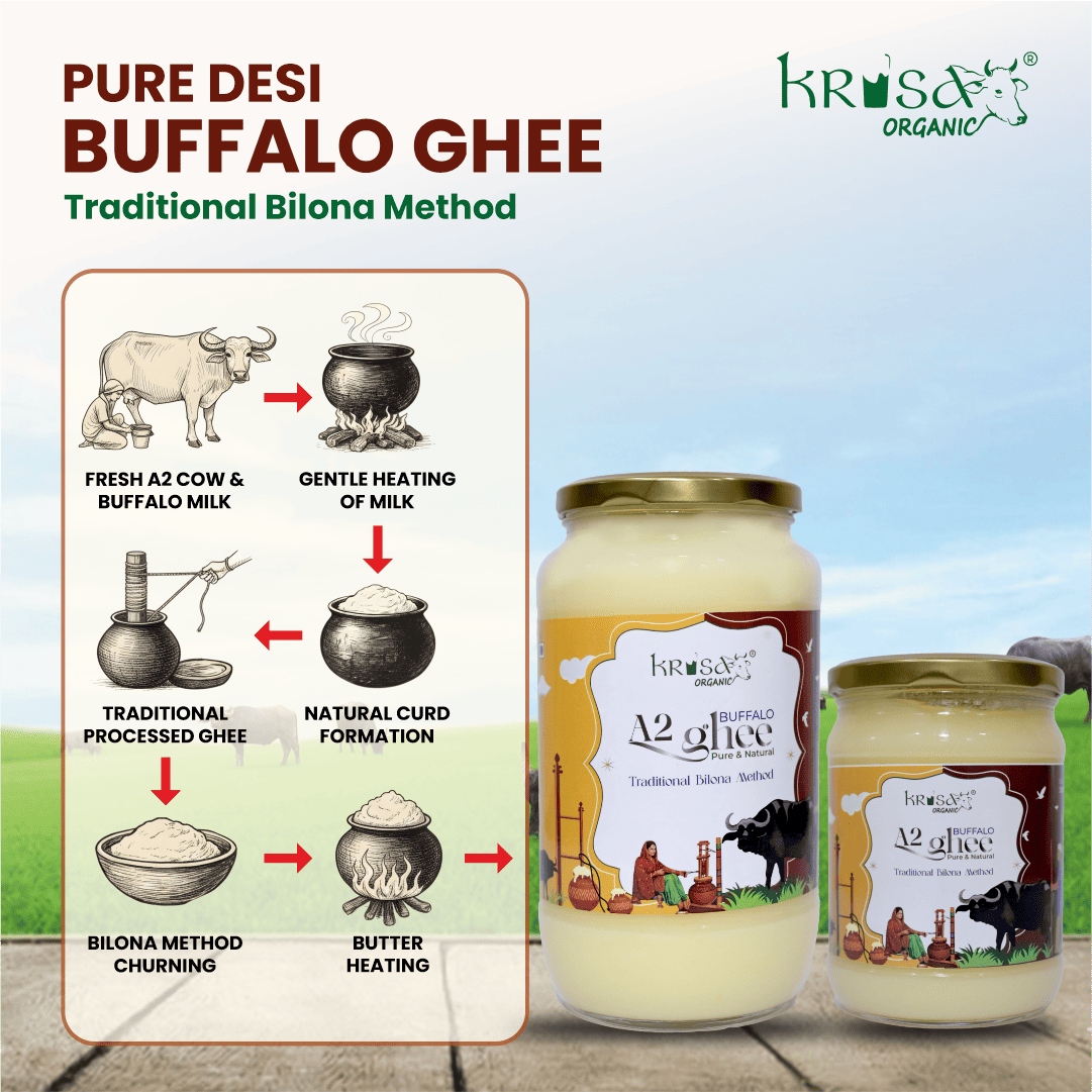 If you’re comparing the pure desi ghee price or planning to buy desi buffalo ghee online, Krisa Organic ensures unmatched purity and authenticity.