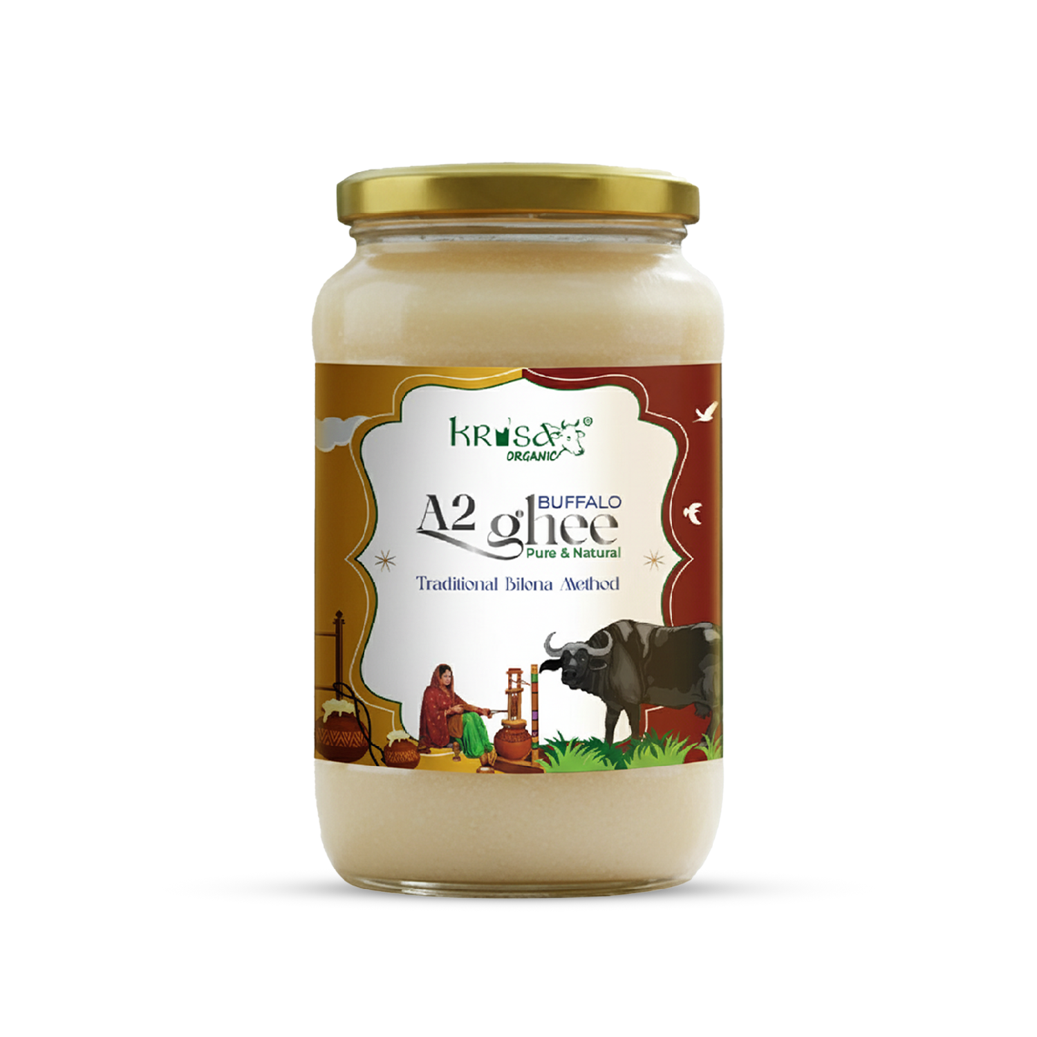 Experience the richness of traditional Indian nutrition with Homemade A2 Desi Buffalo Ghee from Krisa Organic – the best ghee brand known for purity and quality. Our ghee is made using the a2 buffalo bilona ghee method, crafted in small batches using pure buffalo milk sourced from free-grazing A2 Gir buffaloes. This ensures you get the purest buffalo ghee, rich in flavour, nutrients, and health benefits.