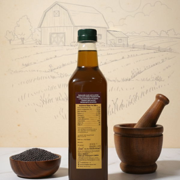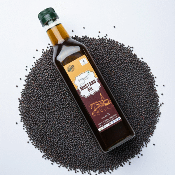 Our oil is cold-pressed from the finest black mustard seeds (sarson) grown by our trusted farmers across India. This traditional method ensures that the oil’s natural pungency, powerful aroma, and all its vital nutrients are perfectly preserved. Unlike refined oils, our mustard oil contains no chemicals or additives, offering you a product that is 100% pure and natural.