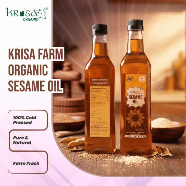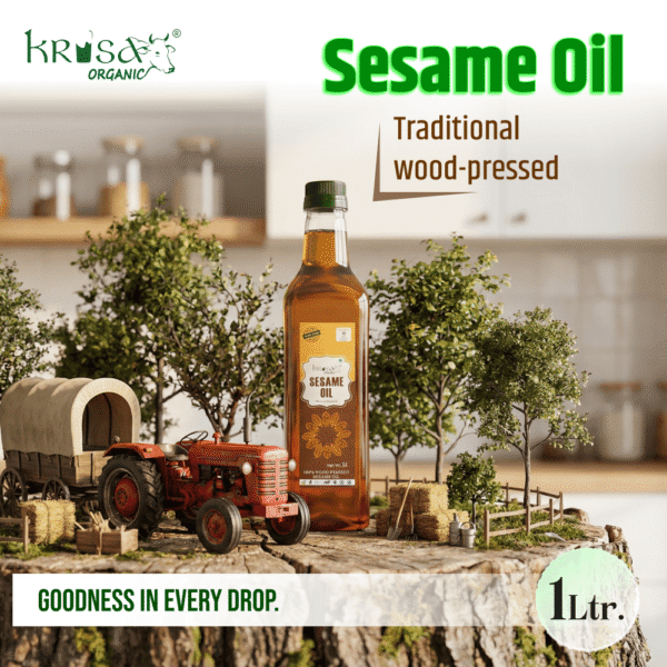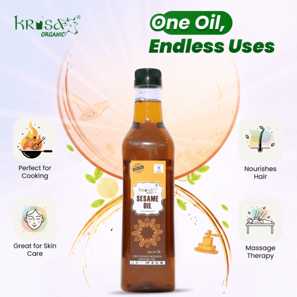 Unlock the timeless secrets of wellness with Krisa Organic’s Wood-Pressed Sesame Oil. Extracted from the finest quality sesame seeds using the traditional ‘Kachi Ghani’ method, this 1 Litre bottle is a powerhouse of purity and nourishment. More than just a cooking oil, it’s a versatile elixir for your entire body, truly embodying the principle of “One Oil, Endless Uses.”
